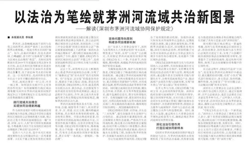 《人民代表报》 | 以法治为笔绘就茅洲河流域共治新图景 ——解读《深圳市茅洲河流域协同保护规定》