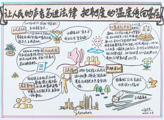 在《中华人民共和国民营经济促进法(草案)》征集期间,福田区人大常委会在全区举办了14场意见征集座谈会,广泛汇集来自大湾区的声音,形成346条意见建议上报全国人大常委会法工委。今年5月20日,《中华人民共和国民营经济促进法》正式实施。其中,福田基层立法联系点报送的 15 条意见建议被采纳。