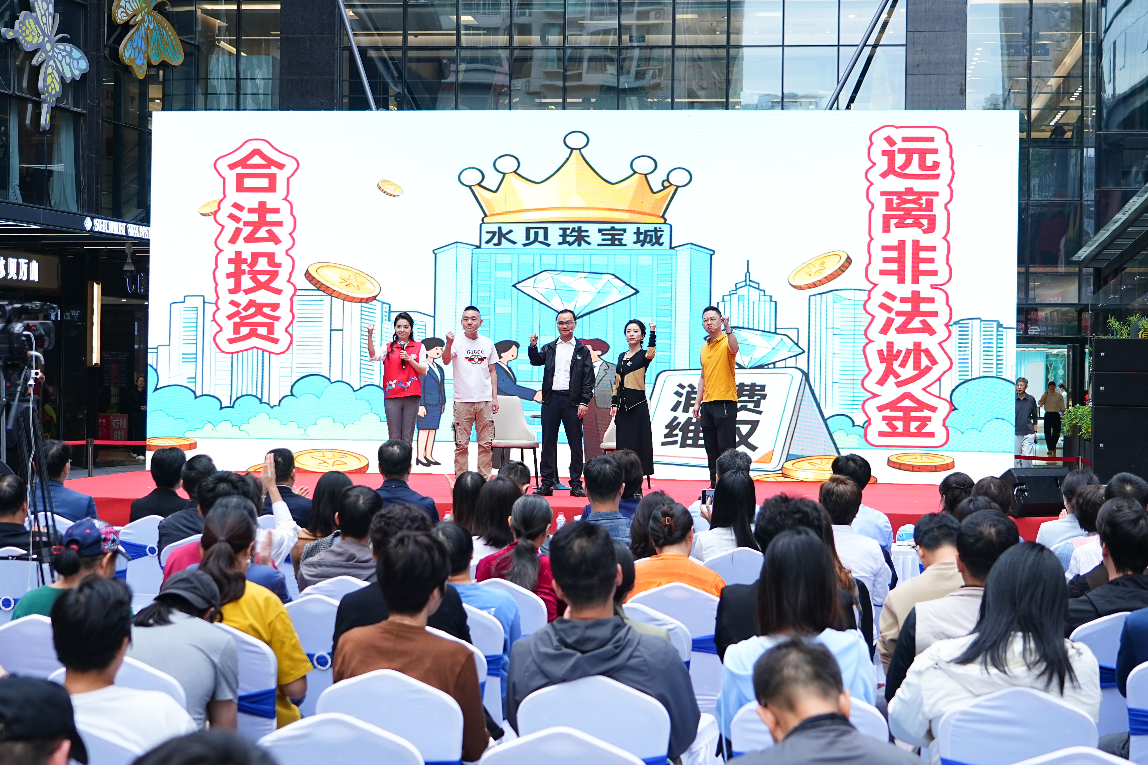 本次普法主题活动聚焦“诚信经营”核心主题,紧扣黄金珠宝行业发展实际与法治需求,通过一系列寓教于乐、形式创新的普法节目,普及了诚信经营、消费者权益保护等方面的法律知识,切实提升市场主体法治素养,助力商家防范风险、稳健经营。原创歌曲《尚法歌》旋律悠扬,唱响了对法治的尊崇与信仰;情景快板《正气歌》节奏明快,叩问诚信之本、经营之道;小品《炊事班的故事》寓教于乐,在欢笑中阐释公平正义的价值内核;《炒金风波》直面黄金投资领域的现实风险,艺术化揭示虚假炒作、违规投机对市场秩序的严重危害。活动中还设置“法官说法”环节,由资深法官结合黄金珠宝行业典型司法案例进行专业剖析与现场答疑,为观众带来一堂发人深省的法治公开课;设置互动性强的“有奖知识问答”环节,由主持人围绕“足金”标准、价格欺诈认定、炒金风险防范、消费者知情权等黄金珠宝产业高频法律风险点设问,现场观众争相竞答,在互动中将法律知识转化为行业共识,有效提升了法治知识的吸收与应用效果。活动最后,全国、省、市、区四级人大代表联袂献唱经典歌曲《珊瑚颂》,深情的旋律寄托了代表们对法治初心的坚守、对为民服务的承诺,也象征着对黄金珠宝产业发展的殷切寄望——唯有扎根法治沃土、坚守诚信本色,产业方能如红珊瑚般坚韧不朽、熠熠生辉。