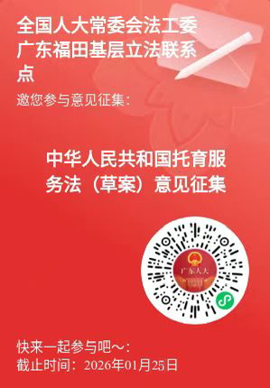 1月4日,深圳特区报&读特记者获悉,作为全国经济特区城市首个、全市唯一的“国家级”基层立法联系点——福田区人大常委会基层立法联系点近期受全国人大常委会法工委的委托,对《中华人民共和国托育服务法(草案)》征求意见,截止日期为1月25日。